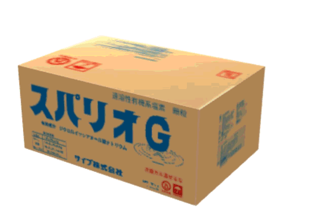 スパリオGは、投入後直ちに溶解し、除菌効果を発揮する浴用水清澄剤です。 浴槽のヌメリをとり、浴用水の透明度を維持。レジオネラ対策にも効果的です。 また少ない塩素臭で、長期間の保存も可能です。 さらに、完全溶解するため配管の詰まりがありません。